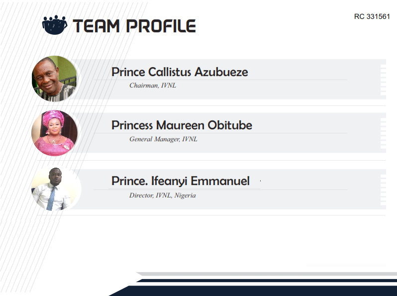 IVNL is an indigenous Nigerian-based construction company, incorporated by the Corporate Affairs Commission on the 11th of March, 1998. It has since handled such projects as road constructions (Osungwu- Nkwo okija of Madonna University, etc), building constructions, water facility construction, supplies and procurement of construction facilities, and so on.